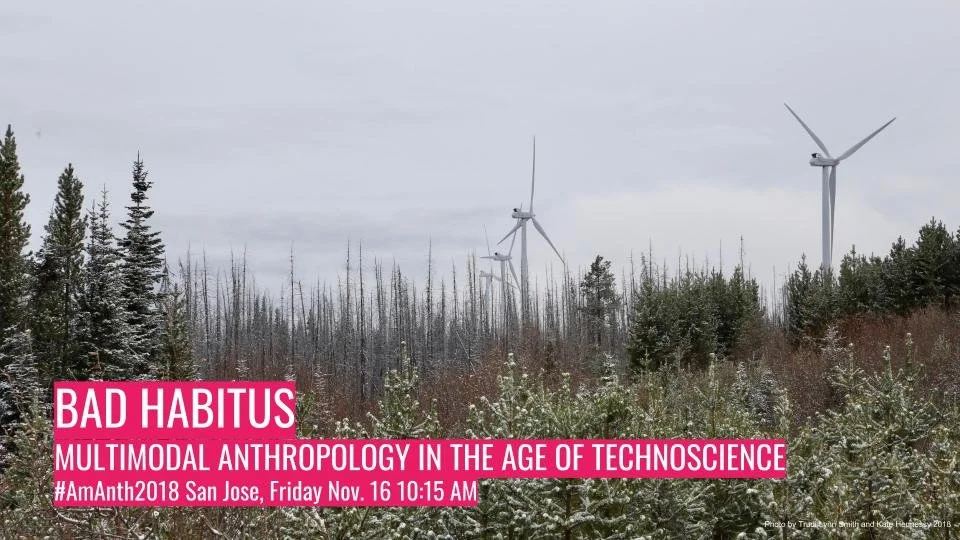 Building on Sara Ahmed’s (2007) concept of bad habits and Pierre Bourdieu’s (1988) habitus, we revisit our 2018 article arguing that multimodal anthropologies run the risk of reproducing and reinforcing a problem of bad habitus. We explore ways in which multimodal anthropologies function to reinforce existing power structures by making recourse to techno-fetishism and obscuring neocolonial practices of extraction, inclusion, and appropriation. Furthering our call for an anthropology of the multimodal (Smith and Hennessy 2019) that may use research-creation––emergent and hybrid artistic-scholarly methodologies (Loveless 2015) that include art-led and practice-based research––we discuss the online exhibition curated in parallel with the panel to highlight the work of artists and scholars whose works interrogate the material and discursive implications of multimodal anthropology as embedded within technoscience.