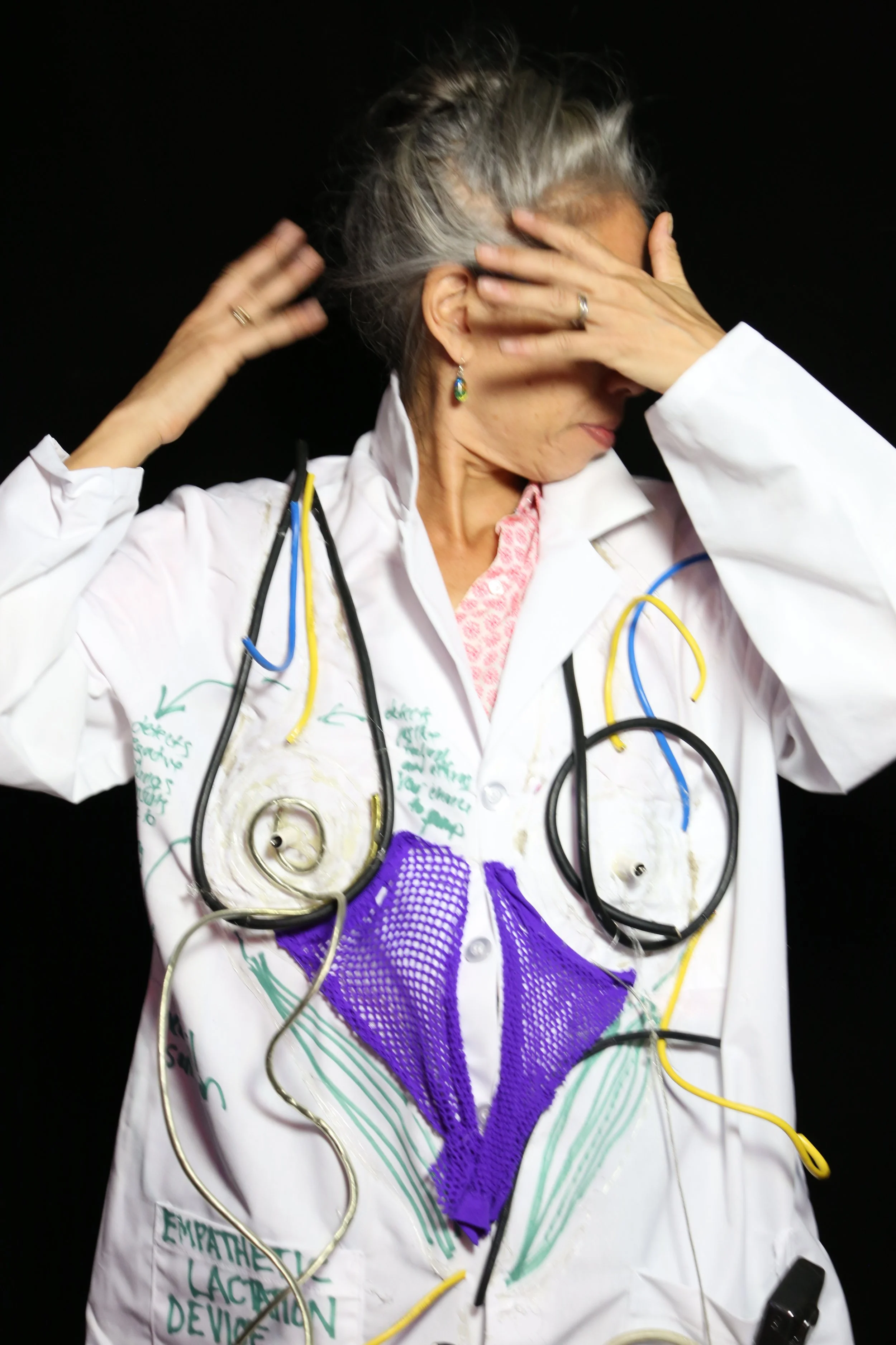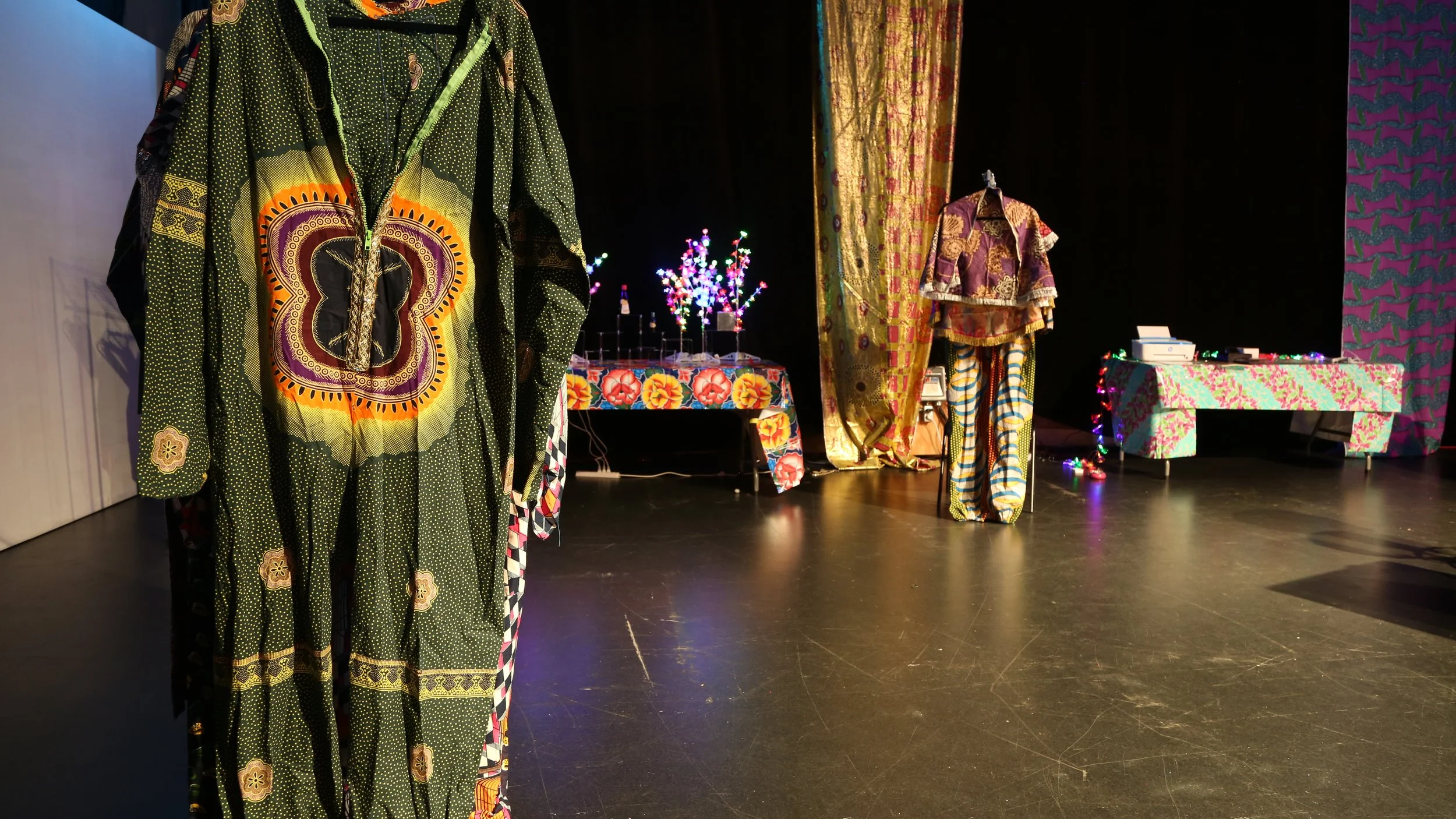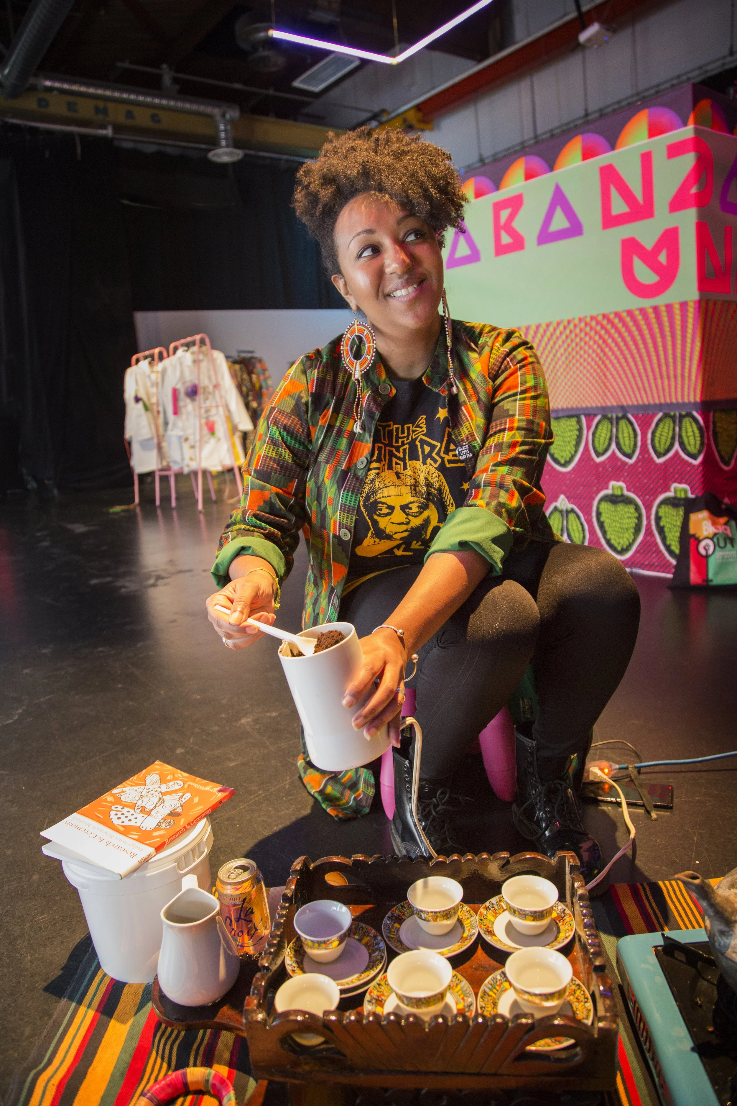 The images included in this gallery draw from the 2019 installation of Wakanda University. Dutch Wax fabrics, with their complex cultural, colonialist histories, provide a background of riotous color and contradiction. Chad Chill and Becky Begone were concocted with pungent herbs from Elizabeth’s garden to ward off the worst vibes generated by whiteness. Bitter notes hit the nose. Together with the community-created Caucasity Detector and Anti-White Noise device, an anthropologist of color might be ready to field some not-really-questions-more-like-comments about their relationships with research participants at the end of a AAA panel. Or, pause for an ironic moment when the anthropologist herself, Micknai Arefaine, hosts an Ethiopian coffee ceremony in the style of her family. She poses in a perfectly composed, disembodied frame and then pauses to smile knowingly directly into the camera, by turns inhabiting and disrupting the exoticizing, otherizing ethnographic gaze. Finally, slip into a Mommy Makeover or Empathetic Lactation laboratory coat before heading out into the field. Embracing those feminine attributes might attract some unwanted attention from senior men scholars. But it is also, awkwardly, appropriate for the feminized nature of qualitative, critical knowledge production. After all, outside of the field, “anthropology” so often indexes a useless form of non-numerical knowledge in US political debates.